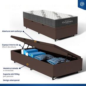 Além do colchão, a base baú incorporada aumenta a funcionalidade do seu quarto, oferecendo um espaço de armazenamento adicional. Construída com madeira tratada, tornando-a não apenas prática mas também durável e resistente. Este conjunto é a solução perfeita para quem busca maximizar o conforto e a utilidade em espaços compactos.