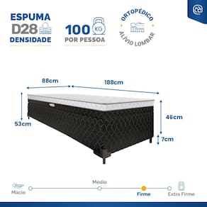 - Dimensões (larg. x comp. x alt.) Solteiro: 88x188x53cm;