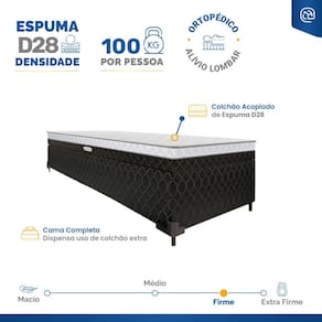 Procurando o equilíbrio perfeito entre conforto e suporte? A cama box baú Nappoli é a solução! Com seu nível de conforto Firme (ortopédico) e espuma D28, ela garante o descanso reparador que você e sua coluna merecem, suportando tranquilamente até 100kg por pessoa.