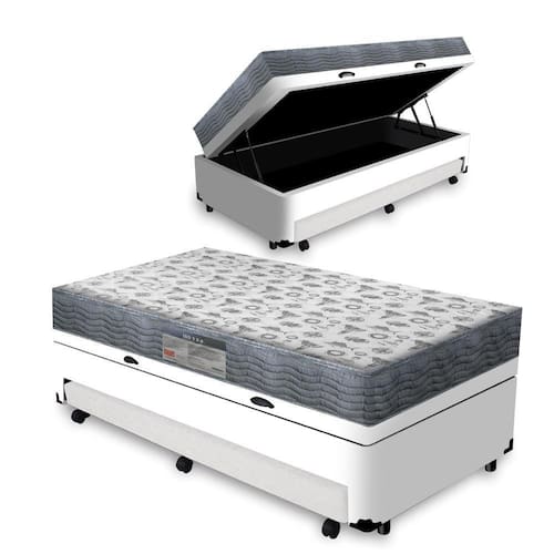 A Cama Box Baú e Auxiliar Solteiro Branca + Colchão De Espuma D33 Ortobom - ISO 100 é uma combinação exclusiva da Lucas Home Center. Que oferece um combo de praticidade e agilidade na aquisição. O Colchão De Espuma D33 ISO 100 Ortobom possui revestimento em Poliéster e Viscose. É indicado para pessoas de até 100kg proporcionando conforto firme, o que lhe confere firmeza suficiente para preservar sua coluna durante o sono sem comprometer seu conforto. Fabricado com matérias-primas de alta qualidade e durabilidade. A cama Box com Baú e Auxiliar é confeccionada com materiais de qualidade, tornando o produto de alta durabilidade, resistência e um excelente acabamento. A alternativa ideal para maior aproveitamento do seu quarto, Ah! Ela conta ainda com cama auxiliar, para acomodar suas visitas com maior conforto, e um baú para guardar o que você desejar. Além de linda, ela é funcional!