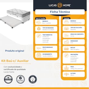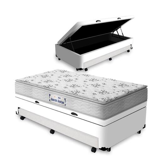 Cama Box Baú e Auxiliar Solteiro + Colchão de Espuma D33 - Probel - Guarda-Costas ProEvidence Plus 88cm - Branco