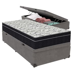Cama Box Baú e Colchão Airtech 150 Espuma D45 Solteiro Ortobom - Cinza