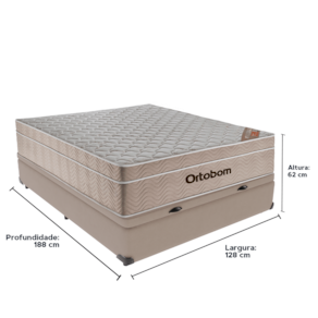 O conforto que sua casa precisa e a qualidade que você merece está na Kazamix! Durma com a Qualidade e Conforto que Você Merece! O Colchão Airtech Molas ensacadas Ortobom é a escolha perfeita para quem busca conforto e suporte. Equipado com um sistema de molas ensacadas, ele oferece suporte individualizado, garantindo o alinhamento correto da coluna e reduzindo os impactos dos movimentos durante o sono. O Euro Pillow proporciona uma camada extra de maciez, garantindo um sono ainda mais revigorante. Seu revestimento em tecido de malha e matelassê, junto com a lateral em suede, proporcionam um visual sofisticado, elevando ainda mais a estética do seu dormitório e agregando elegância ao ambiente. Além disso, o colchão conta com proteção antiácaro e antialérgico, criando um ambiente de sono mais saudável e ideal para quem busca bem-estar. Produzido com materiais de alta qualidade e a confiabilidade da Ortobom, líder em tecnologia e durabilidade, ele é feito para durar, oferecendo anos de conforto e suporte. Modelo: Airtech Molas ensacadas Marca: Ortobom Tamanho: Viúvo Dimensões: 128x188X25 (Largura x Comprimento x Altura) Conforto: Macio Sistema: Molas Ensacadas Pillow: Euro Pillow Peso Máximo recomendado: 120 kg (Por pessoa) Proteções: Antiácaro, antialérgico, antifungo, antimofo Garantia: 1 ano pelo FabricanteO conforto que sua casa precisa e a qualidade que você merece está na Kazamix Aproveite cada metro quadrado do seu dormitório com a Cama Box Baú! Projetada com madeira de reflorestamento reforçada, a Cama Box Baú é a escolha ideal para quem busca otimização de espaço e praticidade na organização do dia a dia. Com um baú generoso, ela oferece a solução perfeita para armazenar travesseiros extras, cobertores, malas e muito mais. Além disso, sua estrutura robusta suporta até 150 kg por pessoa, garantindo a sustentação ideal para o seu colchão e prolongando sua vida útil. O pistão a gás robusto proporciona uma abertura suave e segura do baú, oferecendo praticidade e resistência no uso diário. Para completar, o acabamento de alta qualidade combina perfeitamente com qualquer estilo de decoração, agregando elegância e versatilidade ao seu ambiente. Não perca tempo! Adquira agora mesmo sua Cama Box Baú e diga adeus à falta de espaço e desorganização. Marca: KazaMix Modelo: Baú Tamanho: Viúvo Dimensões: 128X188X37 (Largura x Comprimento x Altura) Estrutura: Madeira Peso máximo recomendado: 150 kg (Por Pessoa) Altura do Box: 32 cm Altura dos Pés: 5 cm Altura total: 37 cm Garantia: 03 meses Selo Ecologicamente Correto Atenção: Antes de finalizar sua compra, certifique-se de que as dimensões do produto sejam adequadas para serem transportadas pelos elevadores, portas, escadas e corredores de sua residência. Ressaltamos que não nos responsabilizamos pelo transporte do produto por meios específicos, como escadas, guinchos ou içamentos.