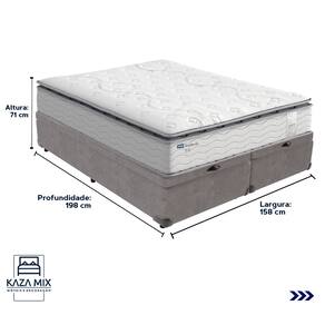 O conforto que sua casa precisa e a qualidade que você merece está na Kazamix! Colchão Probel Amsterdã – a escolha perfeita para noites de sono inigualáveis. Equipado com Molas Ensacadas Prolastic, oferece suporte individualizado, reduzindo a transferência de movimentos para um descanso mais tranquilo. Seu Pillow Top Super proporciona uma camada extra de maciez, elevando o conforto e garantindo uma experiência de luxo. Com camadas de espuma D33 e D65, o Amsterdã combina firmeza e durabilidade, enquanto as proteções antiácaro, antialérgico e antifungo criam um ambiente de sono saudável. Invista em qualidade e bem-estar com o Colchão Probel Amsterdã e transforme suas noites. Modelo: Amsterdã Marca: Probel Tamanho: Queen Dimensões: 158x198X34 (Largura x Comprimento x Altura) Conforto: Firme Sistema: Molas Ensacadas Pillow: Pillow Top Peso Máximo recomendado: 120 kg (Por pessoa) Proteções: Antiácaro, antialérgico, antifungo, antimofo Garantia: 1 ano pelo FabricanteO conforto que sua casa precisa e a qualidade que você merece está na Kazamix Aproveite cada metro quadrado do seu dormitório com a Cama Box Baú! Projetada com madeira de reflorestamento reforçada, a Cama Box Baú é a escolha ideal para quem busca otimização de espaço e praticidade na organização do dia a dia. Com um baú generoso, ela oferece a solução perfeita para armazenar travesseiros extras, cobertores, malas e muito mais. Além disso, sua estrutura robusta suporta até 150 kg por pessoa, garantindo a sustentação ideal para o seu colchão e prolongando sua vida útil. O pistão a gás robusto proporciona uma abertura suave e segura do baú, oferecendo praticidade e resistência no uso diário. Para completar, o acabamento de alta qualidade combina perfeitamente com qualquer estilo de decoração, agregando elegância e versatilidade ao seu ambiente. Não perca tempo! Adquira agora mesmo sua Cama Box Baú e diga adeus à falta de espaço e desorganização. Marca: KazaMix Modelo: Baú Tamanho: Queen Dimensões: 158X198X37 (Largura x Comprimento x Altura) Estrutura: Madeira Peso máximo recomendado: 150 kg (Por Pessoa) Altura do Box: 32 cm Altura dos Pés: 5 cm Altura total: 37 cm Garantia: 03 meses Selo Ecologicamente Correto Atenção: Antes de finalizar sua compra, certifique-se de que as dimensões do produto sejam adequadas para serem transportadas pelos elevadores, portas, escadas e corredores de sua residência. Ressaltamos que não nos responsabilizamos pelo transporte do produto por meios específicos, como escadas, guinchos ou içamentos.
