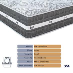 O conforto que sua casa precisa e a qualidade que você merece está na Kazamix! Experimente o conforto do colchão Black Graphite da Anjos. Com tecido em malha para maior respirabilidade e Molas Ensacadas que garantem suporte individualizado, ele proporciona uma noite de sono tranquila. Suas propriedades antiácaro e antialérgico oferecem um ambiente mais saudável, enquanto seu design moderno e 27 cm de altura oferecem o equilíbrio ideal entre conforto e sustentação. Invista em qualidade e durabilidade com o colchão Black Graphite. Modelo: Black Graphite 27 Marca: Anjos Tamanho: Casal Dimensões: 138x188X27 (Largura x Comprimento x Altura) Conforto: Intermediário Sistema: Molas Ensacadas Pillow: Não se Aplica Peso Máximo recomendado: 120 kg (Por pessoa) Proteções: Antiácaro, antialérgico, antifungo, antimofo Garantia: 1 ano pelo FabricanteO conforto que sua casa precisa e a qualidade que você merece está na Kazamix Aproveite cada metro quadrado do seu dormitório com a Cama Box Baú! Projetada com madeira de reflorestamento reforçada, a Cama Box Baú é a escolha ideal para quem busca otimização de espaço e praticidade na organização do dia a dia. Com um baú generoso, ela oferece a solução perfeita para armazenar travesseiros extras, cobertores, malas e muito mais. Além disso, sua estrutura robusta suporta até 150 kg por pessoa, garantindo a sustentação ideal para o seu colchão e prolongando sua vida útil. O pistão a gás robusto proporciona uma abertura suave e segura do baú, oferecendo praticidade e resistência no uso diário. Para completar, o acabamento de alta qualidade combina perfeitamente com qualquer estilo de decoração, agregando elegância e versatilidade ao seu ambiente. Não perca tempo! Adquira agora mesmo sua Cama Box Baú e diga adeus à falta de espaço e desorganização. Marca: KazaMix Modelo: Baú Tamanho: Casal Dimensões: 138X188X37 (Largura x Comprimento x Altura) Estrutura: Madeira Peso máximo recomendado: 150 kg (Por Pessoa) Altura do Box: 32 cm Altura dos Pés: 5 cm Altura total: 37 cm Garantia: 03 meses Selo Ecologicamente Correto Atenção: Antes de finalizar sua compra, certifique-se de que as dimensões do produto sejam adequadas para serem transportadas pelos elevadores, portas, escadas e corredores de sua residência. Ressaltamos que não nos responsabilizamos pelo transporte do produto por meios específicos, como escadas, guinchos ou içamentos.