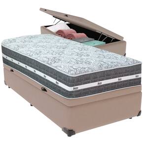 Cama Box Baú e Colchão Black Graphite Molas Ensacadas Solteiro 88x188X32 Anjos - Bege