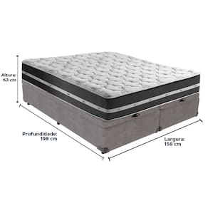 Cama Box Baú e Colchão Classic Preto Molas ensacadas Queen Anjos - Cinza