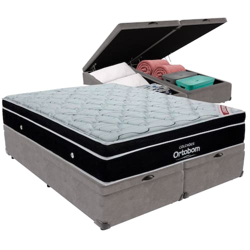 Cama Box Baú e Colchão Elegant Molas Ensacadas Queen Ortobom - Cinza