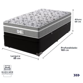 O conforto que sua casa precisa e a qualidade que você merece está na Kazamix! O Colchão Evolution é a escolha ideal para quem busca conforto, suporte e qualidade em cada noite de sono. Com Molas Ensacadas que oferecem um suporte individualizado, e um Pillow Euro que proporciona uma camada extra de suavidade, esse colchão transforma seu descanso em uma experiência de luxo. Com espuma D28 de alta densidade, o Evolution garante firmeza e conforto duradouros. Seu acabamento em poliéster diamante e bordado em matelassê trazem um toque de elegância e sofisticação ao seu ambiente. Além disso, o colchão é tratado com propriedades antiácaro e antialérgico, garantindo um sono mais saudável e seguro. Invista no seu bem-estar com o colchão Evolution, e experimente a combinação perfeita de conforto e durabilidade! Modelo: Evolution Marca: Probel Tamanho: Solteiro Dimensões: 88x188X32 (Largura x Comprimento x Altura) Conforto: Intermediário Sistema: Molas Ensacadas Pillow: Euro Pillow Peso Máximo recomendado: 110 kg (Por pessoa) Proteções: Antiácaro, antialérgico, antifungo, antimofo Garantia: 1 ano pelo FabricanteO conforto que sua casa precisa e a qualidade que você merece está na Kazamix Aproveite cada metro quadrado do seu dormitório com a Cama Box Baú! Projetada com madeira de reflorestamento reforçada, a Cama Box Baú é a escolha ideal para quem busca otimização de espaço e praticidade na organização do dia a dia. Com um baú generoso, ela oferece a solução perfeita para armazenar travesseiros extras, cobertores, malas e muito mais. Além disso, sua estrutura robusta suporta até 150 kg por pessoa, garantindo a sustentação ideal para o seu colchão e prolongando sua vida útil. O pistão a gás robusto proporciona uma abertura suave e segura do baú, oferecendo praticidade e resistência no uso diário. Para completar, o acabamento de alta qualidade combina perfeitamente com qualquer estilo de decoração, agregando elegância e versatilidade ao seu ambiente. Não perca tempo! Adquira agora mesmo sua Cama Box Baú e diga adeus à falta de espaço e desorganização. Marca: KazaMix Modelo: Baú Tamanho: Solteiro Dimensões: 88X188X37 (Largura x Comprimento x Altura) Estrutura: Madeira Peso máximo recomendado: 150 kg (Por Pessoa) Altura do Box: 32 cm Altura dos Pés: 5 cm Altura total: 37 cm Garantia: 03 meses Selo Ecologicamente Correto Atenção: Antes de finalizar sua compra, certifique-se de que as dimensões do produto sejam adequadas para serem transportadas pelos elevadores, portas, escadas e corredores de sua residência. Ressaltamos que não nos responsabilizamos pelo transporte do produto por meios específicos, como escadas, guinchos ou içamentos.