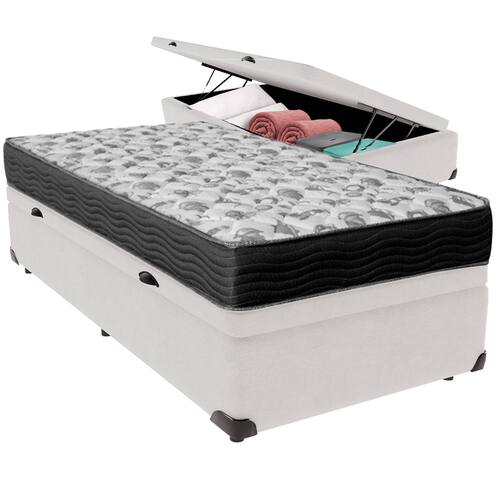 Cama Box Baú e Colchão ISO100 Espuma D33 Solteiro Ortobom - Branco