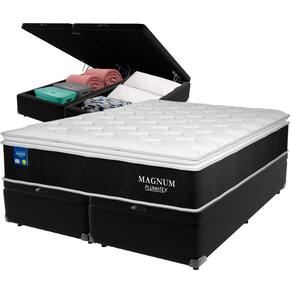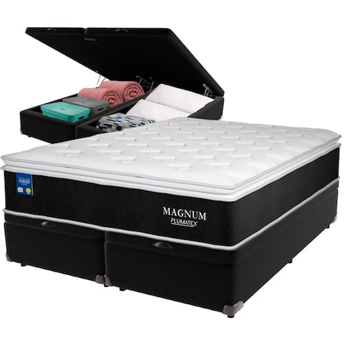 O conforto que sua casa precisa e a qualidade que você merece está na Kazamix! Descubra o colchão Magnum da Plumatex, a escolha ideal para quem busca conforto, suporte e qualidade. Com tecnologia avançada, o Magnum combina o melhor em materiais e design para proporcionar uma experiência de sono única. O colchão conta com uma camada de Malha Chronos 180 g/m², que oferece um toque macio e agradável. As Molas Ensacadas garantem suporte personalizado e distribuem o peso de forma uniforme, minimizando a transferência de movimento. A Espuma D26 oferece firmeza e conforto duradouro, enquanto o EPS Pillow Top High Tech adiciona um toque luxuoso, elevando ainda mais a experiência de descanso. Com proteção antiácaro, antialérgico e antifungo, o Magnum assegura um ambiente saudável para o seu sono. Ideal para quem deseja um colchão durável e de alta performance. Invista no seu bem-estar e experimente o conforto excepcional do Magnum. Modelo: Magnum Marca: Plumatex Tamanho: Queen Dimensões: 158x198X28 (Largura x Comprimento x Altura) Conforto: Intermediário Sistema: Molas Ensacadas Pillow: Pillow Top Peso Máximo recomendado: 110 kg (Por pessoa) Proteções: Antiácaro, antialérgico, antifungo, antimofo Garantia: 1 ano pelo FabricanteO conforto que sua casa precisa e a qualidade que você merece está na Kazamix Aproveite cada metro quadrado do seu dormitório com a Cama Box Baú! Projetada com madeira de reflorestamento reforçada, a Cama Box Baú é a escolha ideal para quem busca otimização de espaço e praticidade na organização do dia a dia. Com um baú generoso, ela oferece a solução perfeita para armazenar travesseiros extras, cobertores, malas e muito mais. Além disso, sua estrutura robusta suporta até 150 kg por pessoa, garantindo a sustentação ideal para o seu colchão e prolongando sua vida útil. O pistão a gás robusto proporciona uma abertura suave e segura do baú, oferecendo praticidade e resistência no uso diário. Para completar, o acabamento de alta qualidade combina perfeitamente com qualquer estilo de decoração, agregando elegância e versatilidade ao seu ambiente. Não perca tempo! Adquira agora mesmo sua Cama Box Baú e diga adeus à falta de espaço e desorganização. Marca: KazaMix Modelo: Baú Tamanho: Queen Dimensões: 158X198X37 (Largura x Comprimento x Altura) Estrutura: Madeira Peso máximo recomendado: 150 kg (Por Pessoa) Altura do Box: 32 cm Altura dos Pés: 5 cm Altura total: 37 cm Garantia: 03 meses Selo Ecologicamente Correto Atenção: Antes de finalizar sua compra, certifique-se de que as dimensões do produto sejam adequadas para serem transportadas pelos elevadores, portas, escadas e corredores de sua residência. Ressaltamos que não nos responsabilizamos pelo transporte do produto por meios específicos, como escadas, guinchos ou içamentos.