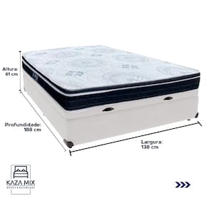 O conforto que sua casa precisa e a qualidade que você merece está na Kazamix! O Colchão Orthosono One Face une conforto firme e durabilidade com espuma D33 de alta qualidade. Com Pillow Top, oferece uma camada extra de conforto para noites de sono ainda mais relaxantes. O revestimento em poliéster com bordado contínuo proporciona maciez e elegância, enquanto a tecnologia No Turn dispensa a necessidade de virar o colchão. Conta com base antiderrapante para maior estabilidade e tratamento antiácaro e antifungo, garantindo proteção contra alérgenos. Produzido com EPS, contribui para melhor isolamento térmico e maior leveza do produto. Certificado pelo INMETRO e fabricado com materiais sustentáveis, é a escolha ideal para quem busca qualidade e bem-estar. Modelo: Orthosono Marca: Anjos Tamanho: Casal Dimensões: 138x188X18 (Largura x Comprimento x Altura) Conforto: Firme Sistema: Espuma D33 Pillow: Pillow Top Peso Máximo recomendado: 140 kg (Por pessoa) Proteções: Antiácaro, antialérgico, antifungo, antimofo Garantia: 1 ano pelo FabricanteO conforto que sua casa precisa e a qualidade que você merece está na Kazamix Aproveite cada metro quadrado do seu dormitório com a Cama Box Baú! Projetada com madeira de reflorestamento reforçada, a Cama Box Baú é a escolha ideal para quem busca otimização de espaço e praticidade na organização do dia a dia. Com um baú generoso, ela oferece a solução perfeita para armazenar travesseiros extras, cobertores, malas e muito mais. Além disso, sua estrutura robusta suporta até 150 kg por pessoa, garantindo a sustentação ideal para o seu colchão e prolongando sua vida útil. O pistão a gás robusto proporciona uma abertura suave e segura do baú, oferecendo praticidade e resistência no uso diário. Para completar, o acabamento de alta qualidade combina perfeitamente com qualquer estilo de decoração, agregando elegância e versatilidade ao seu ambiente. Não perca tempo! Adquira agora mesmo sua Cama Box Baú e diga adeus à falta de espaço e desorganização. Marca: KazaMix Modelo: Baú Tamanho: Casal Dimensões: 138X188X37 (Largura x Comprimento x Altura) Estrutura: Madeira Peso máximo recomendado: 150 kg (Por Pessoa) Altura do Box: 32 cm Altura dos Pés: 5 cm Altura total: 37 cm Garantia: 03 meses Selo Ecologicamente Correto Atenção: Antes de finalizar sua compra, certifique-se de que as dimensões do produto sejam adequadas para serem transportadas pelos elevadores, portas, escadas e corredores de sua residência. Ressaltamos que não nos responsabilizamos pelo transporte do produto por meios específicos, como escadas, guinchos ou içamentos.