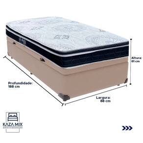 O conforto que sua casa precisa e a qualidade que você merece está na Kazamix! O Colchão Orthosono One Face une conforto firme e durabilidade com espuma D33 de alta qualidade. Com Pillow Top, oferece uma camada extra de conforto para noites de sono ainda mais relaxantes. O revestimento em poliéster com bordado contínuo proporciona maciez e elegância, enquanto a tecnologia No Turn dispensa a necessidade de virar o colchão. Conta com base antiderrapante para maior estabilidade e tratamento antiácaro e antifungo, garantindo proteção contra alérgenos. Produzido com EPS, contribui para melhor isolamento térmico e maior leveza do produto. Certificado pelo INMETRO e fabricado com materiais sustentáveis, é a escolha ideal para quem busca qualidade e bem-estar. Modelo: Orthosono Marca: Anjos Tamanho: Solteiro Dimensões: 88x188X18 (Largura x Comprimento x Altura) Conforto: Firme Sistema: Espuma D33 Pillow: Pillow Top Peso Máximo recomendado: 140 kg (Por pessoa) Proteções: Antiácaro, antialérgico, antifungo, antimofo Garantia: 1 ano pelo FabricanteO conforto que sua casa precisa e a qualidade que você merece está na Kazamix Aproveite cada metro quadrado do seu dormitório com a Cama Box Baú! Projetada com madeira de reflorestamento reforçada, a Cama Box Baú é a escolha ideal para quem busca otimização de espaço e praticidade na organização do dia a dia. Com um baú generoso, ela oferece a solução perfeita para armazenar travesseiros extras, cobertores, malas e muito mais. Além disso, sua estrutura robusta suporta até 150 kg por pessoa, garantindo a sustentação ideal para o seu colchão e prolongando sua vida útil. O pistão a gás robusto proporciona uma abertura suave e segura do baú, oferecendo praticidade e resistência no uso diário. Para completar, o acabamento de alta qualidade combina perfeitamente com qualquer estilo de decoração, agregando elegância e versatilidade ao seu ambiente. Não perca tempo! Adquira agora mesmo sua Cama Box Baú e diga adeus à falta de espaço e desorganização. Marca: KazaMix Modelo: Baú Tamanho: Solteiro Dimensões: 88X188X37 (Largura x Comprimento x Altura) Estrutura: Madeira Peso máximo recomendado: 150 kg (Por Pessoa) Altura do Box: 32 cm Altura dos Pés: 5 cm Altura total: 37 cm Garantia: 03 meses Selo Ecologicamente Correto Atenção: Antes de finalizar sua compra, certifique-se de que as dimensões do produto sejam adequadas para serem transportadas pelos elevadores, portas, escadas e corredores de sua residência. Ressaltamos que não nos responsabilizamos pelo transporte do produto por meios específicos, como escadas, guinchos ou içamentos.
