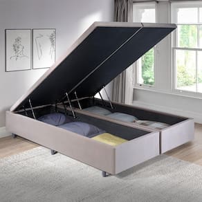 Baú King Californiano 178 O manuseio do baú é bastante simples, não tem desculpa para não organizar, com pistões a gás. Com revestimento em Suede Bege, a higienização é facilitada e seu acabamento protege o baú de qualquer deformidade por impacto externo