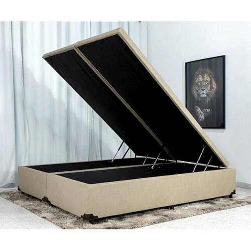 Cama Box Baú King Bipartido Blindada 193x203x40cm - Bege Claro