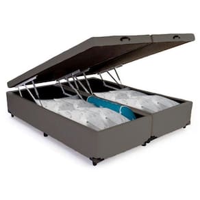 Cama Box Baú King Bipartido Sintético SerenePrime Cinza 198x203x44