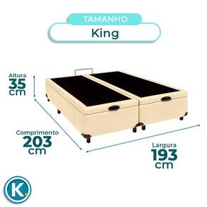 Cama Box Bau King Blindado Nature Begetiza 193x203 Base baú Queen com 42cm de altura e amplo espaço interno para organização Revestimento em Veludo , fácil de limpar e com visual moderno