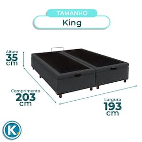 Cama Box Bau King Blindado Nature Cinza 193x203 Base baú King com 37cm de altura e amplo espaço interno para organização Revestimento em Veludo , fácil de limpar e com visual moderno