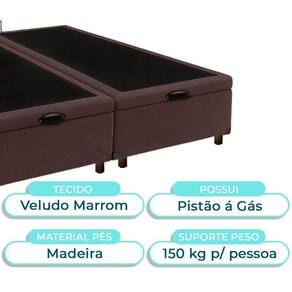 Modelo: Elite Marca: Nature Tamanho: King Tecido: Veludo Largura: 193cm Comprimento: 203cm Altura: 35cm Altura dos Pés: 7cm Material dos Pés: Madeira Suporte de Peso: 150Kg Peso: 50Kg Garantia: 3 Meses