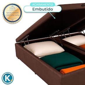 Cama Box Bau King Blindado Nature Marrom 193x203 Base baú King com 37cm de altura e amplo espaço interno para organização Revestimento em Veludo , fácil de limpar e com visual moderno