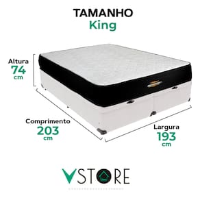 A tecnologia que a sua casa merece está na V-Store! O Conjunto Colchão Orthopedic + Base Box Baú Bravus da V-Store une conforto e funcionalidade. O colchão, com espuma D33 e suporte extra firme, oferece alinhamento ideal e proteção contra ácaros, alergias e fungos. A base box baú, com estrutura resistente e espaço interno, combina organização e estilo, otimizando seu dormitório com praticidade e elegância.Característica Do Colchão: Modelo: OrthopedicMarca: V-StoreTamanho: KingDimensões: 193x30x203 (Largura x Altura x Comprimento)Conforto: Extra FirmeSistema: EspumaPillow: Não se aplicaPeso Máximo recomendado: 110 kg (Por pessoa)Proteções: Antiácaro, antialérgico, antifungo, antimofoGarantia: 12 Meses (Espuma)Característica Da Base: Marca: V-StoreModelo: BravusCor do Box: BrancoTamanho: KingDimensões: 193x44x203 (Largura x Altura x Comprimento)Estrutura: MadeiraPeso máximo recomendado: 150 kg (Por Pessoa)Altura do Box: 38 cmAltura dos Pés: 6 cmAltura total: 44 cmGarantia: 12 Meses (Estrutura) / 3 meses (Tecido)Selo Ecologicamente CorretoAtenção:- Antes de finalizar sua compra, recomendamos que verifique se as dimensões do produto são adequadas para serem transportadas pelos elevadores, portas, escadas e corredores de sua residência. Ressaltamos que não nos responsabilizamos pelo transporte do produto por meios específicos, como escadas, guinchos ou içamentos.- É possível que hajam leves variações de cor de acordo com o dispositivo que está sendo utilizado como smartphones, computadores, monitores e outros.