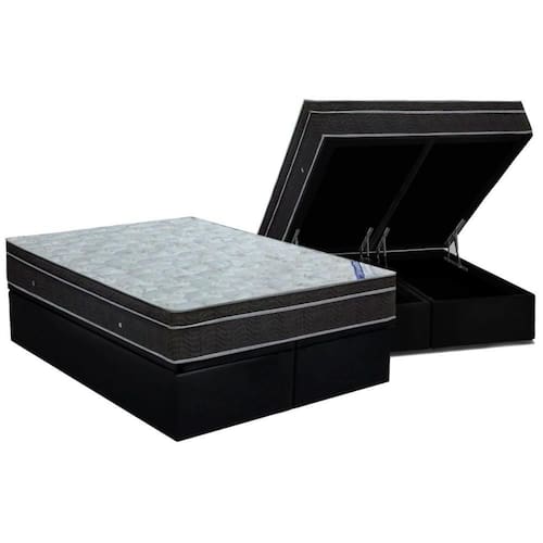 Abaixo segue os produtos do KIT: Conjunto Box Baú King: Colchão Molas Ortobom Nanolastic Light + Base CRC Suede Black (186x198)