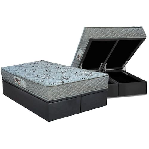 Cama Box Baú King: Colchão Ortopédico Paropas Ag65 Double Fanton Gray + Base Crc Suede Gray (193x203)