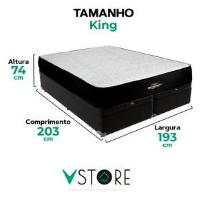 A tecnologia que a sua casa merece está na V-Store! O Conjunto Colchão Orthopedic + Base Box Baú Bravus da V-Store une conforto e funcionalidade. O colchão, com espuma D33 e suporte extra firme, oferece alinhamento ideal e proteção contra ácaros, alergias e fungos. A base box baú, com estrutura resistente e espaço interno, combina organização e estilo, otimizando seu dormitório com praticidade e elegância.Característica Do Colchão: Modelo: OrthopedicMarca: V-StoreTamanho: KingDimensões: 193x30x203 (Largura x Altura x Comprimento)Conforto: Extra FirmeSistema: EspumaPillow: Não se aplicaPeso Máximo recomendado: 110 kg (Por pessoa)Proteções: Antiácaro, antialérgico, antifungo, antimofoGarantia: 12 Meses (Espuma)Característica Da Base: Marca: V-StoreModelo: BravusTamanho: KingDimensões: 193x44x203 (Largura x Altura x Comprimento)Estrutura: MadeiraPeso máximo recomendado: 150 kg (Por Pessoa)Altura do Box: 38 cmAltura dos Pés: 6 cmAltura total: 44 cmGarantia: 12 Meses (Estrutura) / 3 meses (Tecido)Selo Ecologicamente CorretoAtenção:- Antes de finalizar sua compra, recomendamos que verifique se as dimensões do produto são adequadas para serem transportadas pelos elevadores, portas, escadas e corredores de sua residência. Ressaltamos que não nos responsabilizamos pelo transporte do produto por meios específicos, como escadas, guinchos ou içamentos.- É possível que hajam leves variações de cor de acordo com o dispositivo que está sendo utilizado como smartphones, computadores, monitores e outros.