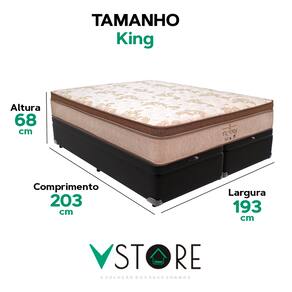A tecnologia que a sua casa merece está na V-Store! O colchão Victory Solteiro da V-Store oferece noites de sono tranquilas e confortáveis, com seu toque macio e sistema de molas ensacadas que garantem suporte ideal e independência de movimentos. O Pillow Euro Pillow proporciona ainda mais suavidade, enquanto a tecnologia EPS adiciona resistência e durabilidade. Com proteções contra ácaros, fungos, mofo e alergias, ele garante um ambiente de sono saudável. Suporta até 150 kg por pessoa e tem garantia de 12 meses.A Base Box Baú Bravus da V-Store combina praticidade e sofisticação, com madeira reflorestada e revestimento sintético que facilitam a manutenção. Seu design otimiza o espaço de armazenamento e oferece resistência, suportando até 150 kg por pessoa. Com 44 cm de altura total e Selo Ecologicamente Correto, ela é ideal para quem busca sustentabilidade e qualidade. Transforme seu quarto com o colchão Victory e a Base Box Baú Bravus da V-Store!Característica Do Colchão: Modelo: VictoryMarca: V-StoreTamanho: KingDimensões: 193x30x203 (Largura x Altura x Comprimento)Conforto: MédioSistema: Molas EnsacadasPillow: Euro PillowPeso Máximo recomendado: 150 kg (Por pessoa)Proteções: Antiácaro, antialérgico, antifungo, antimofoGarantia: 12 Meses (Espuma) / 10 anos ( Conjunto de Molas Ensacadas)Característica Da Base: Marca: V-StoreModelo: BravusCor do Box: PretoTamanho: KingDimensões: 193x44x203 (Largura x Altura x Comprimento)Estrutura: MadeiraPeso máximo recomendado: 150 kg (Por Pessoa)Altura do Box: 38 cmAltura dos Pés: 6 cmAltura total: 44 cmGarantia: 12 Meses (Estrutura) / 3 meses (Tecido)Selo Ecologicamente CorretoAtenção:- Antes de finalizar sua compra, recomendamos que verifique se as dimensões do produto são adequadas para serem transportadas pelos elevadores, portas, escadas e corredores de sua residência. Ressaltamos que não nos responsabilizamos pelo transporte do produto por meios específicos, como escadas, guinchos ou içamentos.- É possível que hajam leves variações de cor de acordo com o dispositivo que está sendo utilizado como smartphones, computadores, monitores e outros.