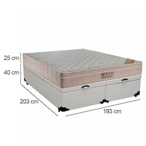 Cama Box Baú King Sintético Bipartido + Colchão Ortobom Airtech Molas Ensacadas 65x193x203 Branco