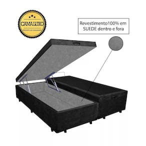 Cama Box Baú Luxo Blindado Suede Preto com Revestimento Interno em Suede Cinza é produzido com os melhores materiais, proporcionando uma alta resistência e durabilidade prolongada.