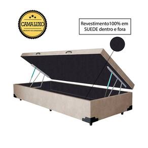 Cama Box Baú Luxo Blindado Suede Bege com Revestimento Interno em Suede Preto é produzido com os melhores materiais, proporcionando uma alta resistência e durabilidade prolongada.