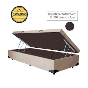 Cama Box Baú Luxo Blindado Suede Bege com Revestimento Interno em Suede Marrom é produzido com os melhores materiais, proporcionando uma alta resistência e durabilidade prolongada.