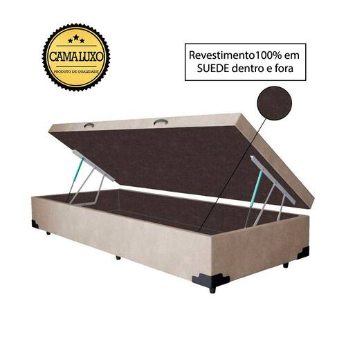 Cama Box Baú Luxo Blindado Suede Bege com Revestimento Interno em Suede Marrom é produzido com os melhores materiais, proporcionando uma alta resistência e durabilidade prolongada.