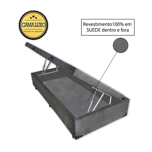 Cama Box Baú Luxo Blindado com Revestimento Interno em suede é produzido com os melhores materiais, proporcionando uma alta resistência e durabilidade prolongada.