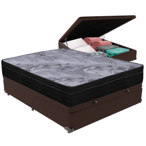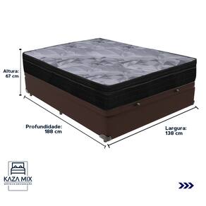 O conforto que sua casa precisa e a qualidade que você merece está na Kazamix!Redefina suas noites de sono com o Colchão Pampa Molas Ensacadas, projetado para oferecer máximo conforto e suporte. Suas molas ensacadas individualmente garantem estabilidade, minimizando vibrações e proporcionando um descanso tranquilo. O Ortopillow com tecido em poliéster de alta resistência e bordado matelassê acrescenta uma camada extra de maciez e conforto. Com tratamento antiácaro, antifungo e tecnologia No Turn, é ideal para quem busca praticidade e um ambiente de sono mais saudável. Este colchão combina qualidade e durabilidade para oferecer uma experiência de descanso incomparável.Modelo: Pampa Marca: OrtobomTamanho: CasalDimensões: 138x188X24 (Largura x Comprimento x Altura)Conforto: MacioSistema: Molas ensacadas Pillow: Euro PillowPeso Máximo recomendado: 120 kg (Por pessoa)Proteções: Antiácaro, antialérgico, antifungo, antimofoGarantia: 1 ano pelo FabricanteO conforto que sua casa precisa e a qualidade que você merece está na KazamixAproveite cada metro quadrado do seu dormitório com a Cama Box Baú!Projetada com madeira de reflorestamento reforçada, a Cama Box Baú é a escolha ideal para quem busca otimização de espaço e praticidade na organização do dia a dia.Com um baú generoso, ela oferece a solução perfeita para armazenar travesseiros extras, cobertores, malas e muito mais. Além disso, sua estrutura robusta suporta até 150 kg por pessoa, garantindo a sustentação ideal para o seu colchão e prolongando sua vida útil.O pistão a gás robusto proporciona uma abertura suave e segura do baú, oferecendo praticidade e resistência no uso diário. Para completar, o acabamento de alta qualidade combina perfeitamente com qualquer estilo de decoração, agregando elegância e versatilidade ao seu ambiente.Não perca tempo! Adquira agora mesmo sua Cama Box Baú e diga adeus à falta de espaço e desorganização.Marca: KazaMixModelo: BaúCor do Box: MarromTamanho: CasalDimensões: 138X188X37 (Largura x Comprimento x Altura) Estrutura: MadeiraPeso máximo recomendado: 150 kg (Por Pessoa)Altura do Box: 32 cm Altura dos Pés: 5 cm Altura total: 37 cm Garantia: 03 mesesSelo Ecologicamente CorretoAtenção: Antes de finalizar sua compra, certifique-se de que as dimensões do produto sejam adequadas para serem transportadas pelos elevadores, portas, escadas e corredores de sua residência. Ressaltamos que não nos responsabilizamos pelo transporte do produto por meios específicos, como escadas, guinchos ou içamentos.