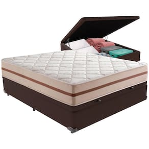 Com um baú generoso, ela oferece a solução perfeita para armazenar travesseiros extras, cobertores, malas e muito mais. Além disso, sua estrutura robusta suporta até 150 kg por pessoa, garantindo a sustentação ideal para o seu colchão e prolongando sua vida útil.