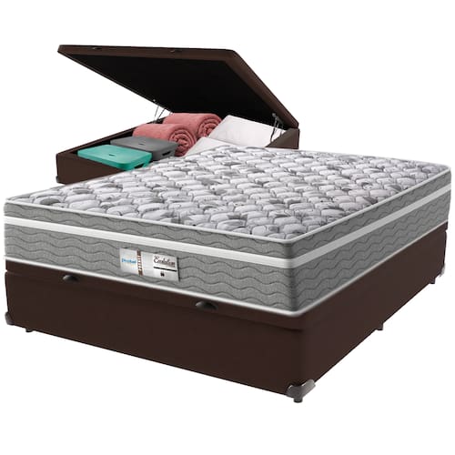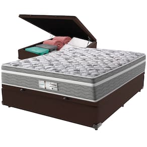 Cama Box Baú Marrom e Colchão Evolution Molas Ensacadas Casal Probel