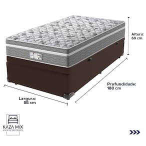 O conforto que sua casa precisa e a qualidade que você merece está na Kazamix!O Colchão Evolution é a escolha ideal para quem busca conforto, suporte e qualidade em cada noite de sono. Com Molas Ensacadas que oferecem um suporte individualizado, e um Pillow Euro que proporciona uma camada extra de suavidade, esse colchão transforma seu descanso em uma experiência de luxo.Com espuma D28 de alta densidade, o Evolution garante firmeza e conforto duradouros. Seu acabamento em poliéster diamante e bordado em matelassê trazem um toque de elegância e sofisticação ao seu ambiente.Além disso, o colchão é tratado com propriedades antiácaro e antialérgico, garantindo um sono mais saudável e seguro.Invista no seu bem-estar com o colchão Evolution, e experimente a combinação perfeita de conforto e durabilidade!Modelo: EvolutionMarca: ProbelTamanho: SolteiroDimensões: 88x188X32 (Largura x Comprimento x Altura)Conforto: IntermediárioSistema: Molas EnsacadasPillow: Euro PillowPeso Máximo recomendado: 110 kg (Por pessoa)Proteções: Antiácaro, antialérgico, antifungo, antimofoGarantia: 1 ano pelo FabricanteO conforto que sua casa precisa e a qualidade que você merece está na KazamixAproveite cada metro quadrado do seu dormitório com a Cama Box Baú!Projetada com madeira de reflorestamento reforçada, a Cama Box Baú é a escolha ideal para quem busca otimização de espaço e praticidade na organização do dia a dia.Com um baú generoso, ela oferece a solução perfeita para armazenar travesseiros extras, cobertores, malas e muito mais. Além disso, sua estrutura robusta suporta até 150 kg por pessoa, garantindo a sustentação ideal para o seu colchão e prolongando sua vida útil.O pistão a gás robusto proporciona uma abertura suave e segura do baú, oferecendo praticidade e resistência no uso diário. Para completar, o acabamento de alta qualidade combina perfeitamente com qualquer estilo de decoração, agregando elegância e versatilidade ao seu ambiente.Não perca tempo! Adquira agora mesmo sua Cama Box Baú e diga adeus à falta de espaço e desorganização.Marca: KazaMixModelo: BaúCor do Box: MarromTamanho: SolteiroDimensões: 88X188X37 (Largura x Comprimento x Altura) Estrutura: MadeiraPeso máximo recomendado: 150 kg (Por Pessoa)Altura do Box: 32 cm Altura dos Pés: 5 cm Altura total: 37 cm Garantia: 03 mesesSelo Ecologicamente CorretoAtenção: Antes de finalizar sua compra, certifique-se de que as dimensões do produto sejam adequadas para serem transportadas pelos elevadores, portas, escadas e corredores de sua residência. Ressaltamos que não nos responsabilizamos pelo transporte do produto por meios específicos, como escadas, guinchos ou içamentos.