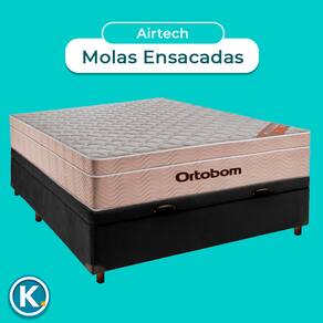 Cama Box Bau Preto Casal + Colchão Molas Ensacadas Airtech Ortobom