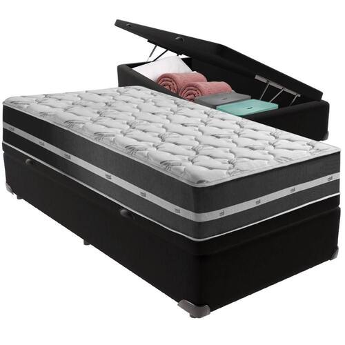 Com um baú generoso, ela oferece a solução perfeita para armazenar travesseiros extras, cobertores, malas e muito mais. Além disso, sua estrutura robusta suporta até 150 kg por pessoa, garantindo a sustentação ideal para o seu colchão e prolongando sua vida útil.