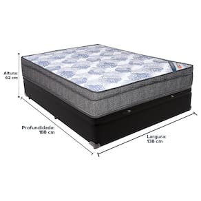 O conforto que sua casa precisa e a qualidade que você merece está na Kazamix!O Colchão ISO Molas combina molas ensacadas individualmente e espuma D26, proporcionando suporte personalizado e conforto duradouro. Com Pillow Euro e lateral em tecido suede, oferece maior maciez e sofisticação, além de proteger as laterais. O sistema No Turn facilita a manutenção, tornando-o prático e durável. Produzido pela Ortobom, reconhecida pela qualidade, é a escolha ideal para um sono reparador e confortável.Modelo: ISO MolasMarca: OrtobomTamanho: CasalDimensões: 138x188X25 (Largura x Comprimento x Altura)Conforto: IntermediárioSistema: Molas EnsacadasPillow: ORTO PILLOWPeso Máximo recomendado: 100 kg (Por pessoa)Proteções: Antiácaro, antialérgico, antifungo, antimofoGarantia: 1 ano pelo FabricanteO conforto que sua casa precisa e a qualidade que você merece está na KazamixAproveite cada metro quadrado do seu dormitório com a Cama Box Baú!Projetada com madeira de reflorestamento reforçada, a Cama Box Baú é a escolha ideal para quem busca otimização de espaço e praticidade na organização do dia a dia.Com um baú generoso, ela oferece a solução perfeita para armazenar travesseiros extras, cobertores, malas e muito mais. Além disso, sua estrutura robusta suporta até 150 kg por pessoa, garantindo a sustentação ideal para o seu colchão e prolongando sua vida útil.O pistão a gás robusto proporciona uma abertura suave e segura do baú, oferecendo praticidade e resistência no uso diário. Para completar, o acabamento de alta qualidade combina perfeitamente com qualquer estilo de decoração, agregando elegância e versatilidade ao seu ambiente.Não perca tempo! Adquira agora mesmo sua Cama Box Baú e diga adeus à falta de espaço e desorganização.Marca: KazaMixModelo: BaúCor do Box: PretoTamanho: CasalDimensões: 138X188X37 (Largura x Comprimento x Altura) Estrutura: MadeiraPeso máximo recomendado: 150 kg (Por Pessoa)Altura do Box: 32 cm Altura dos Pés: 5 cm Altura total: 37 cm Garantia: 03 mesesSelo Ecologicamente CorretoAtenção: Antes de finalizar sua compra, certifique-se de que as dimensões do produto sejam adequadas para serem transportadas pelos elevadores, portas, escadas e corredores de sua residência. Ressaltamos que não nos responsabilizamos pelo transporte do produto por meios específicos, como escadas, guinchos ou içamentos.