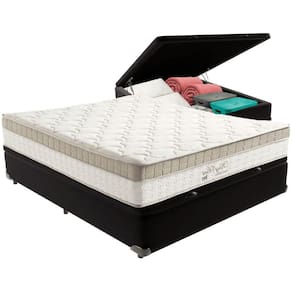 Com um baú generoso, ela oferece a solução perfeita para armazenar travesseiros extras, cobertores, malas e muito mais. Além disso, sua estrutura robusta suporta até 150 kg por pessoa, garantindo a sustentação ideal para o seu colchão e prolongando sua vida útil.