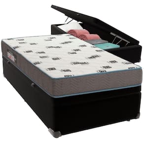 Cama Box Baú Preto E Colchão Light Espuma D33 Solteiro Ortobom