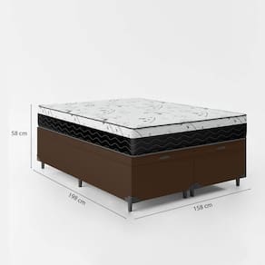Cama Box Baú Queen 158 Tecido Sintético Marrom com Colchão Espuma D33 One Face Preto - Bello Box - 58x158x198
