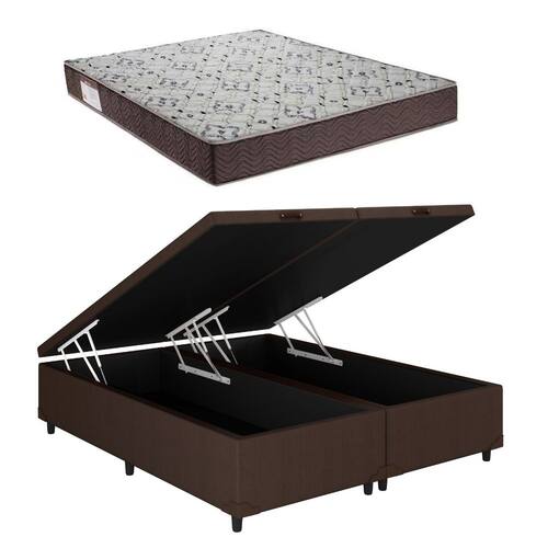 Cama Box Baú Queen Bipartido Corino Marrom+ Colcão Iso 150 D45 158x198x18 - Ortobom