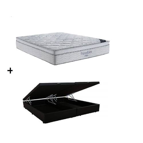 Cama Box Baú Queen Bipartido Preto Colchão Freedom Molas Ensacadas 158x198 - Ortobom