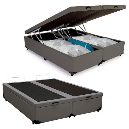 Cama Box Baú Queen Bipartido Sintético SerenePrime Cinza 158x198x44 A Base Box é confeccionada com estrutura de madeira 100% reflorestada com tratamentos Antialérgico e Antiácaro, proporcionando alta durabilidade e resistência do produto. Possui excelente acabamento dando um ar de sofisticação e requinte.