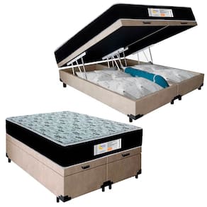 Cama Box Baú Queen Bipartido Suede + Colchão Molas Ensacadas SerenePrime Sonnolux 158x198x69 Bege