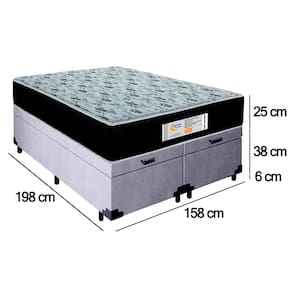 Cama Box Baú Queen Bipartido Suede + Colchão Molas Ensacadas SerenePrime Sonnolux 158x198x69 Cinza